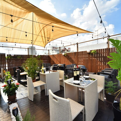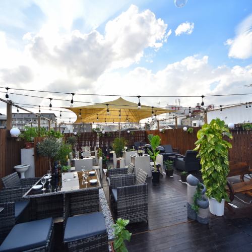 開放的な屋上テラス席で快適にビアガーデン・バーベキューをお楽しみください!直射日光を遮るための対策も行なっており、ミストの設置もしております。真夏日でも楽しくお酒も楽しめるよう最大限工夫しております!
